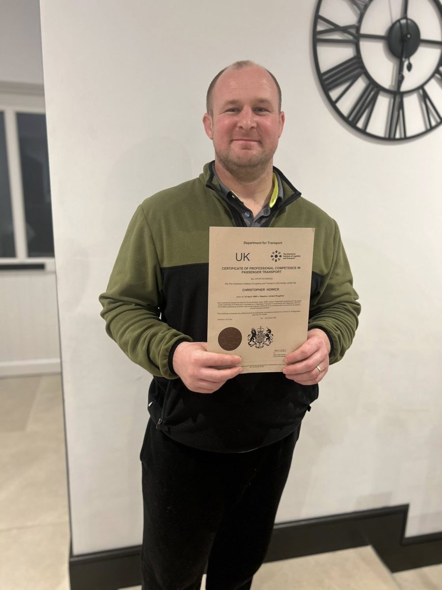 A huge WELL DONE to Chris for completing his training and passing his final exam for the Traffic Manager CPC Passenger Transport qualification.